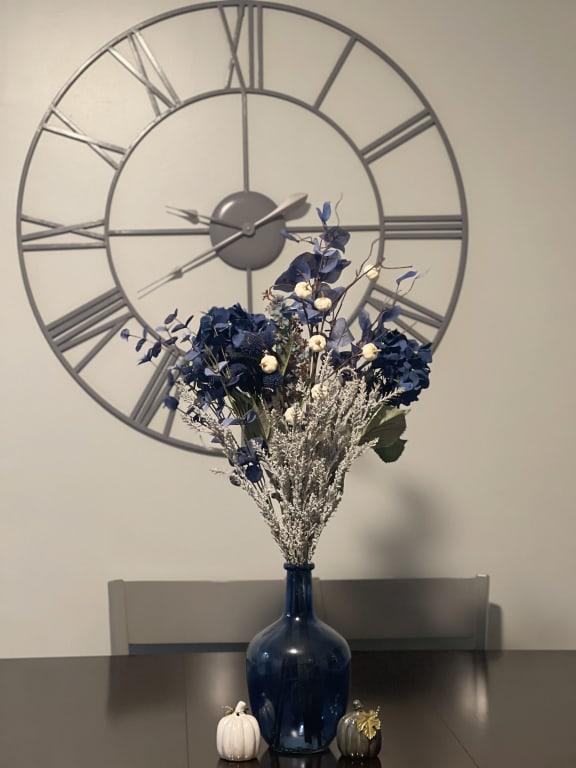 The Blue Hydrangea Floral Bush brings the charm and elegance of natural flowers without any upkeep. Crafted from polyester, this delightful arrangement retains its vibrant blue hues and blooming beauty all year round. Perfect for brightening up your home, office, or special event.