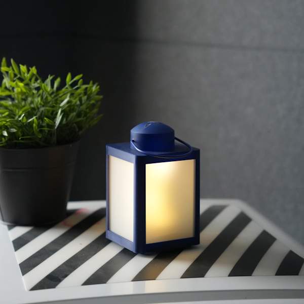 Blue Plastic LED Lantern with Frosted Glass, 6.7