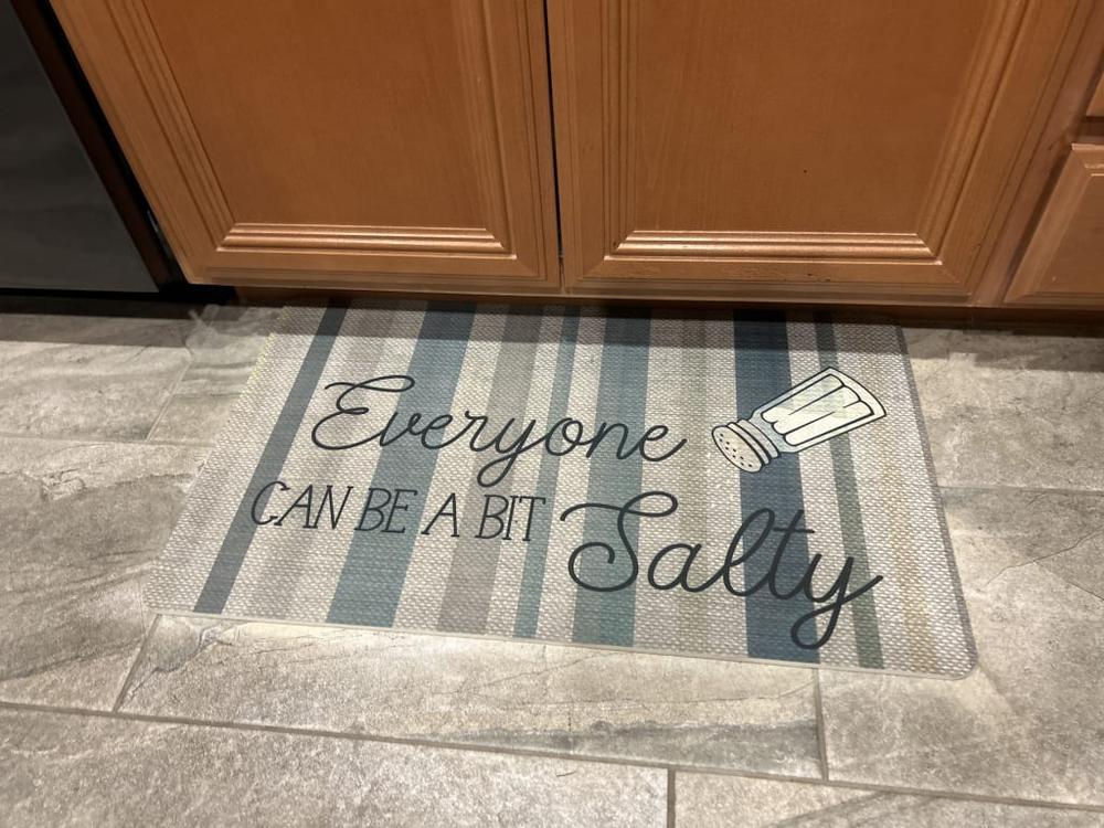 The Cushion Comfort Everyone Salty Stripe Blue Kitchen Mat is a delightful blend of comfort and style. Its soft and supportive cushioning is designed to savor your feet during long hours in the kitchen.