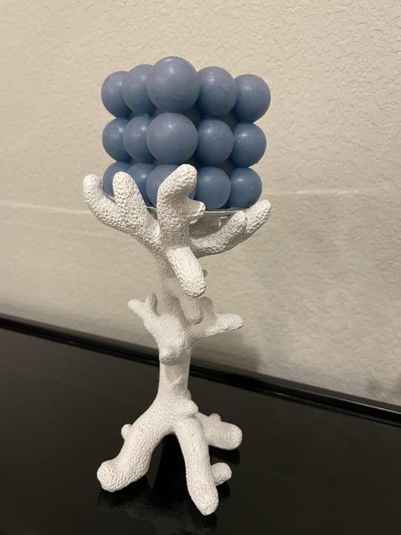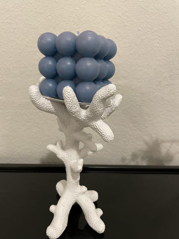 Immerse yourself in the enchanting decor theme of Roller Wave with the Blue Dot Candle. Its elegant simplicity and gentle curves make it an eye-catching centerpiece or a stylish addition to your existing decor.