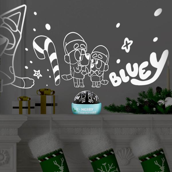 Transform any room with the Christmas Tabletop Shadow Lights. Featuring your favorite Bluey Christmas figures, this decoration is sure to get your friends, family, and neighbors in the Christmas spirit. It projects on the wall up to ten feet and is ready to greet your guests. For setup, flip the switch and watch the Bluey magic unfold. Display this Christmas decoration as a standalone or combine it with others to create a custom scene.