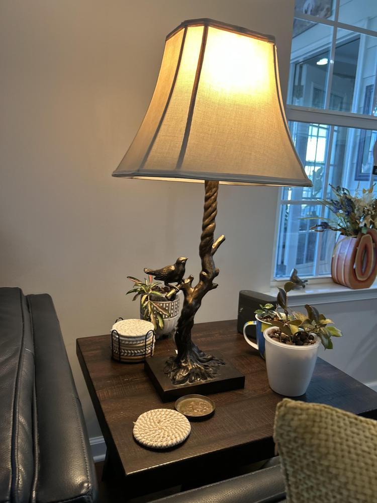 Bring a touch of whimsy to your space with the Bronze Bird Table Lamp. The unique square shape and bronze finish create a stylish, modern look that effortlessly complements any interior style. Place it on a side table or nightstand to create a cozy and inviting atmosphere, or use it as a statement piece to showcase your personal style.