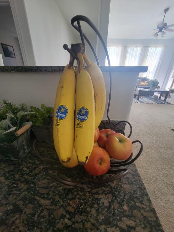 This basket hanger offers a delightful way to showcase your favorite fruits. Its ample capacity ensures ample space for various types of fruits, while the handy banana hanger* lets you hang bananas for easy access and optimal ripening.