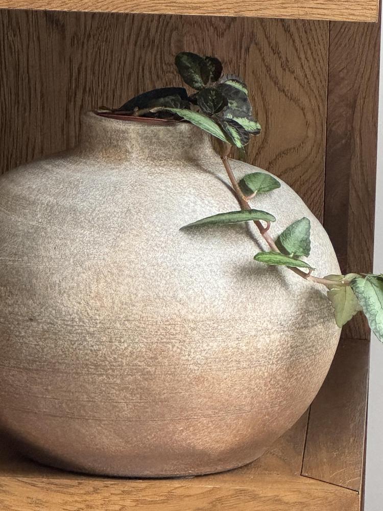 This Brown Ceramic Vase blends with any decor style, providing a stage for showcasing your favorite blooms or standing as a statement piece. Crafted from ceramic, it adds an earthy flair to your shelf or table.