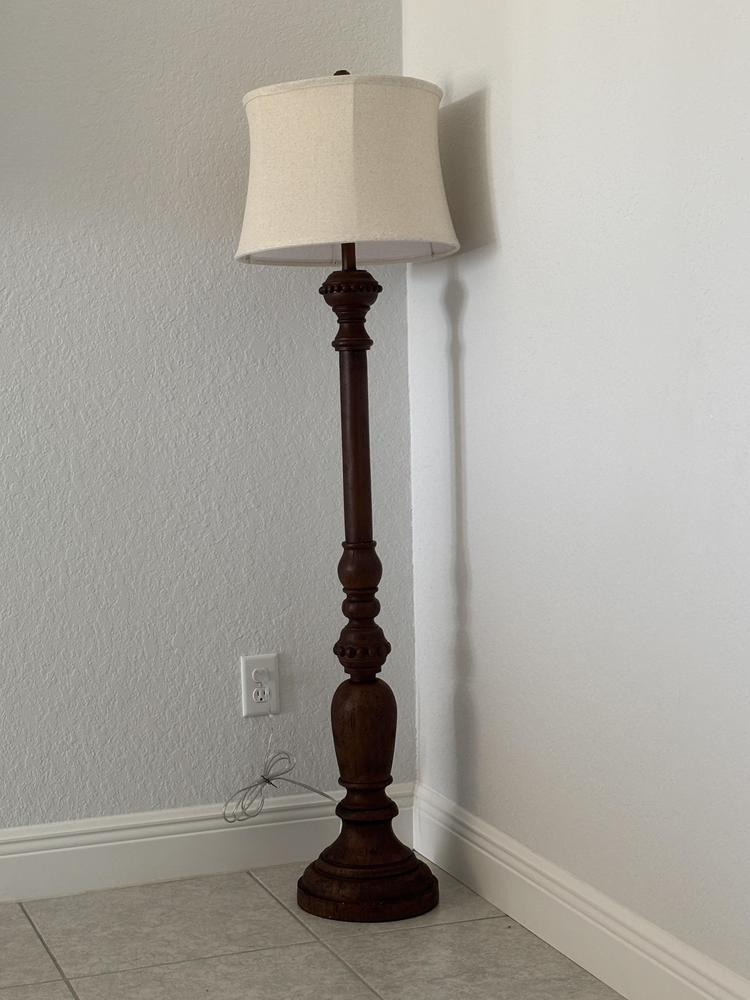 - Brown Resin Faux Wood Turned Floor Lamp with Shade, 60"