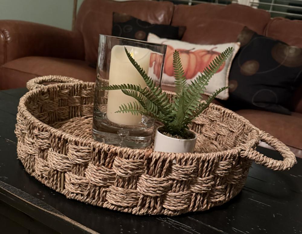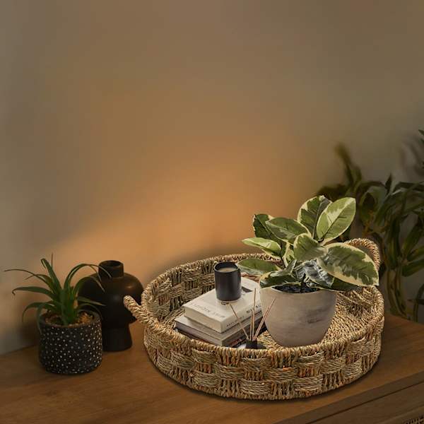 Freshen up your home with our 16.5in. Brown Seagrass Round Tray. Accented with a 100% natural seagrass motif, this wonderful handled tray is on-trend to give your home that refreshing coastal feel. Use to serve breakfast in bed, food, and drinks at a party or makes for an excellent centerpiece for your dining table, kitchen counter, coffee table, or ottoman.