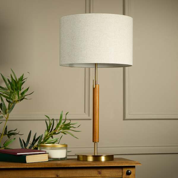 Add a touch of timeless illumination to your space with the medium-size 28in. Brown Wood and Metal Table Lamp with Shade. Crafted from mixed wood and metal, this lamp features a simple modern design that seamlessly blends with any decor. Whether placed on a side table, console, or buffet, the lamp casts a warm and inviting glow that creates a cozy ambiance in your home. Elevate your interior lighting with the brown and gold table lamp. Its dramatic contemporary silhouette adds a sophisticated touch to your space, while the mixed media construction ensures durability. This lamp is not only a practical lighting solution but also a stylish decorative piece, effortlessly enhancing the overall aesthetic of any room.