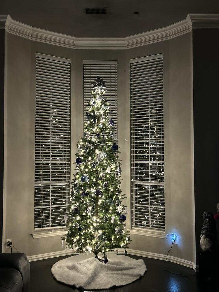 Skip the trip to a tree lot this year and anchor your holiday decorations with this 9ft. Pre-Lit Artificial Seattle Spruce Christmas Tree with 40in. diameter. Just as festive as a live tree, this piece is made with metal-hinged branches that are covered with 2296 green tips and comes pre-lit with 650 warm white LED lights. This Christmas tree is broken up into assembly sections to make storage easy. It also arrives with an included metal stand, so all you need to do is add a tree skirt, your favorite ornaments then sit back and enjoy the season.