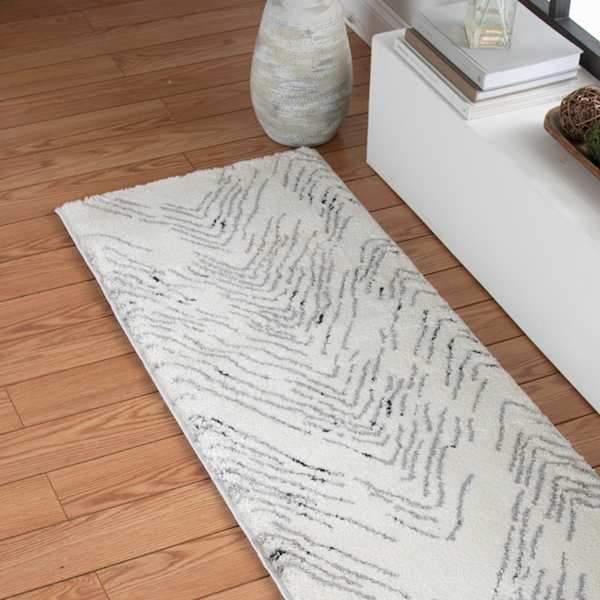 Need an instant room refresh? Switch things up a bit and roll out our Mylah White Strato Shag Runner Rug to set a refreshing patterned foundation in any room in your home. Showcasing a sketchy animal stripe from end to end, it gives off an interesting modern aesthetic. The soft synthetic fabrication offers comfort and is more resistant to wear. This interesting rug is full of options and comes in a 2x6ft. runner and 3x5ft., 5x7ft. and 8x10ft. sizes.