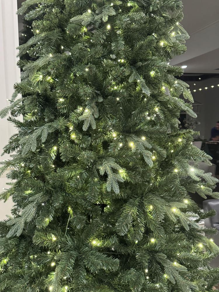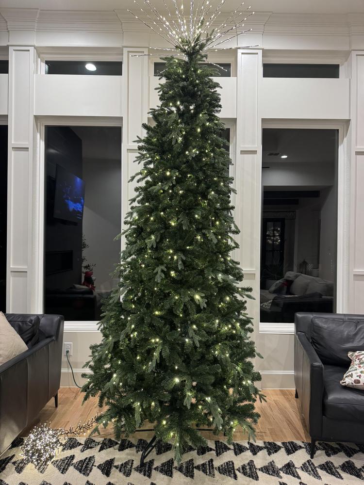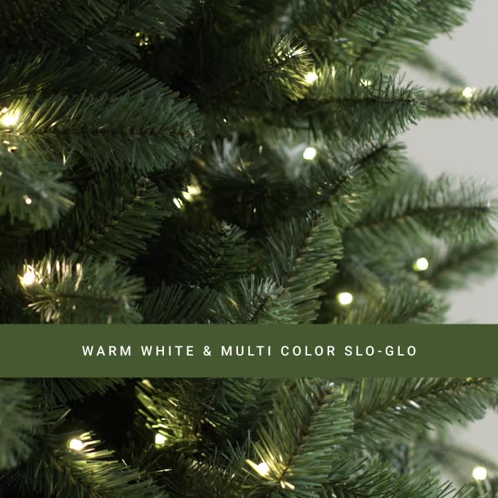Match any mood and add instant ambience with our versatile color-changing tree collection. Welcome the season with our 10ft. Pre-Lit Alberta Spruce Tree. This tree stands 10ft. high and spans 56in. diameter for a full, balanced silhouette in rich green. 700 color-changing pre-strung LED lights glow evenly across layered branches, creating instant ambiance the moment you plug it in. Realistic plastic needles with a 2653 tip count, keep their shape and color season after season. Simple to set up and style, it becomes the easy focal point of your holiday scene. Metal stand included.