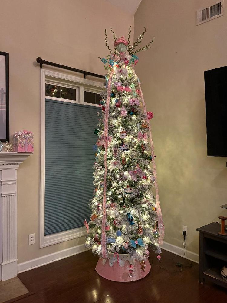 Skip the trip to a tree lot this year and anchor your holiday decorations with this 9ft. Pre-Lit Flocked Phoenix Pine Artificial Christmas Tree with 36in. diameter. Just as festive as a live tree, this piece is made with metal-hinged branches that are covered with 952 tips. It also comes pre-lit with 400 warm white LED lights featuring 5 different functions. This Christmas tree features a full shape broken up into assembly sections to make storage easy. It also arrives with an included metal stand, so all you need to do is add a tree skirt, your favorite ornaments then sit back and enjoy the season.