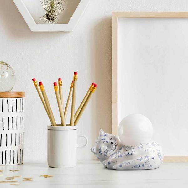 Our fabulous Ceramic Sleeping Cat with LED Glob is a cool night light for kids, babies and adults. Featuring a sweet lying kitty with refreshing white and blue floral design, it's a lovely LED ceramic statue lamp also can be displayed as an ornament. This mood lamp not only brightly decorates your bedroom, it also stimulates your imagination with its cute appearance. This cat night lamp can be the kids' nighttime hero, helping them get rid of their fear of darkness and allowing them to sleep more peacefully.