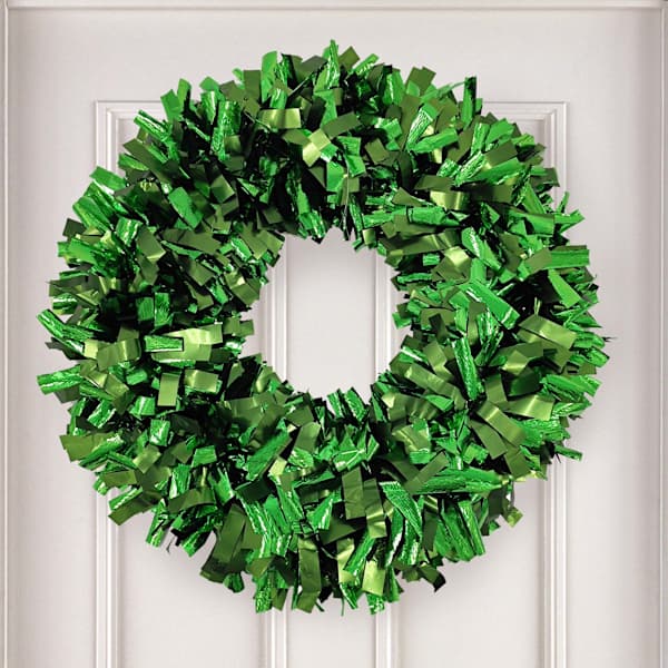 Enjoy all the traditions of Christmas with pops of velvet poinsettias and bold patterns make it oh-so-merry, with a touch of black and white graphics with items from our Classic Christmas Collection. Bring on the sparkle with this 30in. green tinsel wreath in a timeless Christmas style. Lush, shimmering strands create a full, festive look that brightens any room. This festive wreath makes a bold statement on interior doors, walls, or above the mantel. Lightweight and easy to hang, it shines as Christmas wall decor or a cheerful door accent. Keep it simple or add ribbon and lights to make it your own.