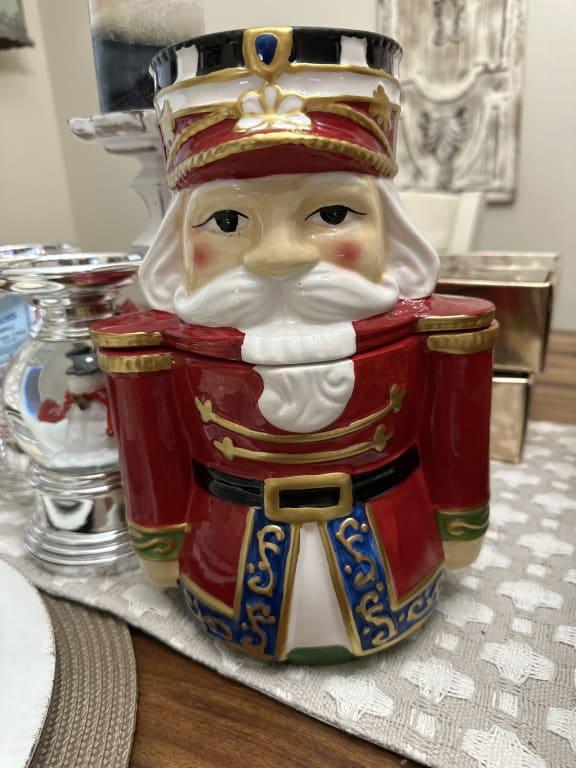 Enjoy all the traditions of Christmas with pops of velvet poinsettias and bold patterns make it oh-so-merry, with a touch of black and white graphics with items from our Classic Christmas Collection. Bring classic Christmas charm to your home with this 6.5x10in. ceramic nutcracker jar, finished in festive red, green, and gold with a crisp white beard. The sculpted soldier silhouette stands out on mantels, shelves, and countertops, adding a cheerful, nostalgic touch to holiday decor. The timeless multicolor design pairs effortlessly with traditional Christmas accents and makes a thoughtful seasonal gift.