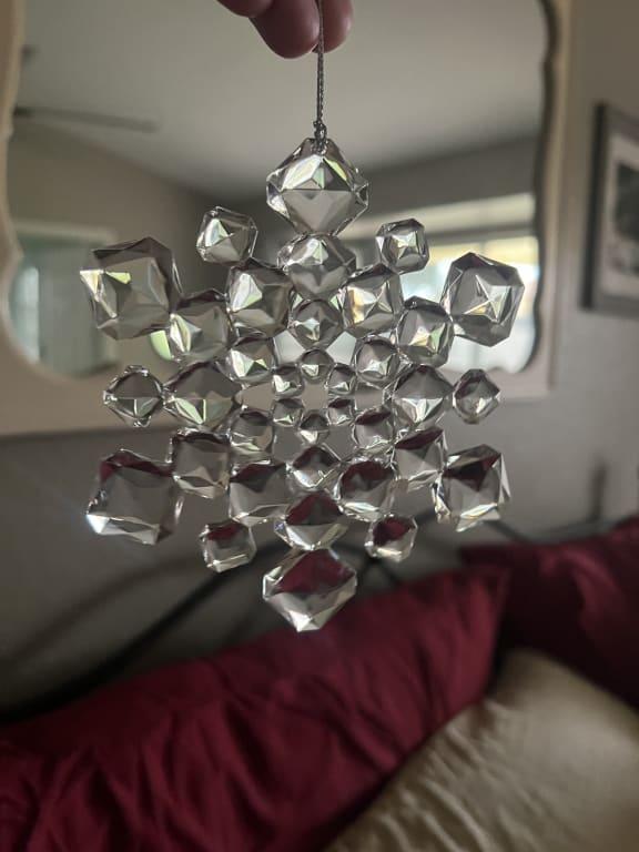 Bring crisp winter shine to your space with the 4.5in. Silver Clear Snowflake Ornament. Crafted from clear plastic with silver accents, its faceted design catches the light for an icy, sparkling look. The timeless snowflake silhouette complements both modern and classic holiday decor. Lightweight and ready to hang, it sits beautifully on tree branches, wreaths, or garlands.