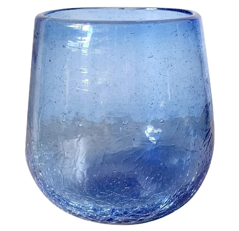 Experience the perfect blend of style and function with our Cobalt Blue Crackle Glass Stemless Wine Glass. The brilliant cobalt blue color adds a fun and vibrant touch to any occasion, whether it's a casual gathering with friends or a romantic dinner for two.