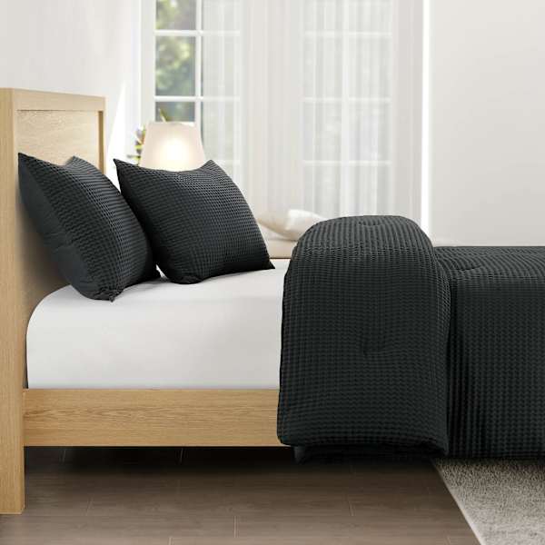 Discover the ultimate blend of style and comfort with the Crosby St. 2-Piece Black Waffle Cotton Twin/Twin XL Duvet Set. Crafted from pure cotton, this set offers a modern aesthetic that brings a sleek, sophisticated touch to any bedroom decor.