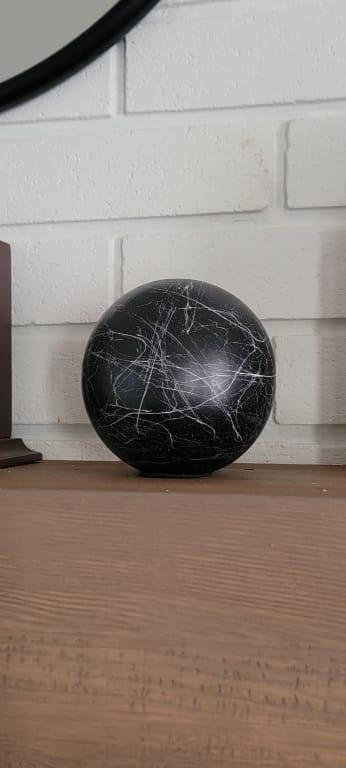 Featuring a sleek black finish and a faux marble pattern, this eye-catching orb stands out as a versatile decor piece. Whether displayed on a coffee table, shelf, or mantel, its unique design seamlessly blends with various interior styles.