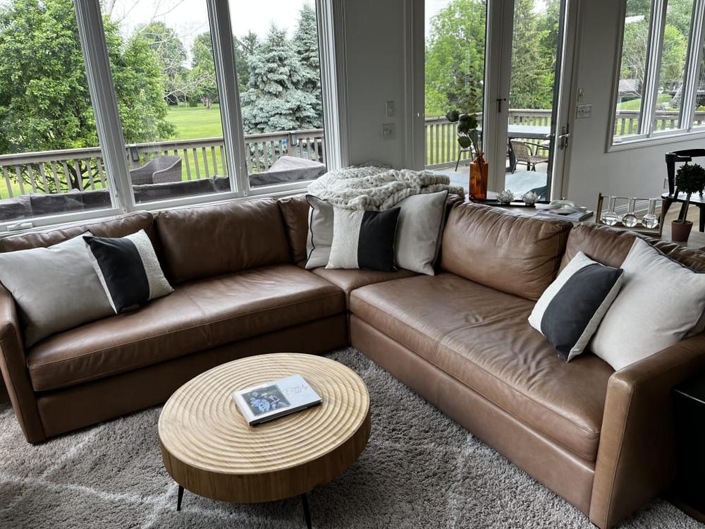 Upgrade your home decor with the Crosby St. Black Leather Patched Throw Pillow. Its versatile black color and leather patchwork design add a contemporary edge to any living space, making it the perfect accent piece for sofas, chairs, and beds.