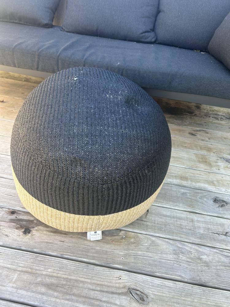 Add a touch of modern sophistication and comfort to your outdoor space with this versatile outdoor pouf. Its tan and black color block design effortlessly blends into any outdoor decor. Whether you're lounging by the pool or hosting a backyard get-together, this pouf adds a stylish and functional seating option for all your outdoor activities.