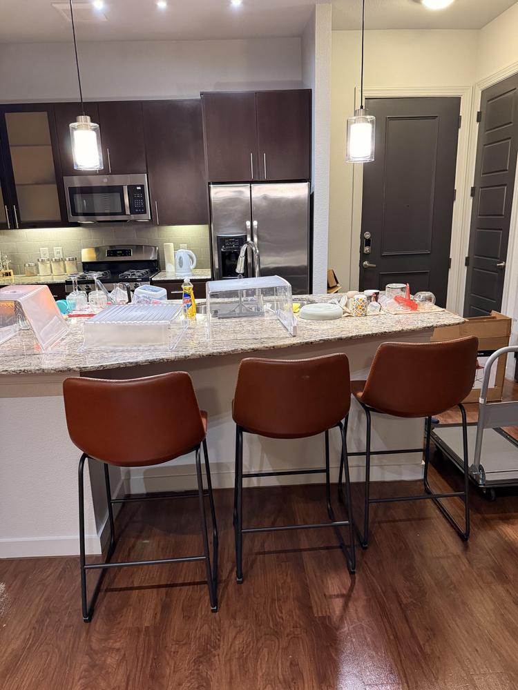 Elevate your dining experience with the Crosby St. Drake Counter Stool. Crafted with a brown faux leather material, this stool effortlessly adds a touch of style to any space. Its modern design seamlessly blends with any decor, making it a versatile option for your kitchen island or countertop.