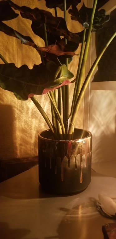 Enhance your indoor space or elevate your outdoor garden with the Crosby St. Indoor Gold Drip Black Planter. Its sleek and contemporary design effortlessly blends in with any decor theme, adding a sophisticated touch to your surroundings. Whether you're housing your favorite blooming plants or showcasing decorative greenery, the Crosby St. Planter is ready for the task.