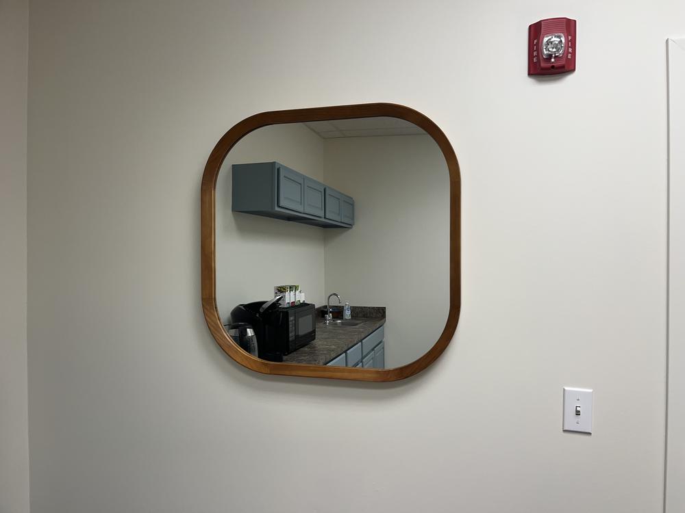CheckoutThe Crosby St. Square with Rounded Edges Wall Mirror offers a sleek and modern design that seamlessly fits into any decor theme. Its rich brown frame adds a touch of warmth, while the rounded edges provide a soft, sophisticated look, making it perfect for living rooms, bedrooms, or hallways.