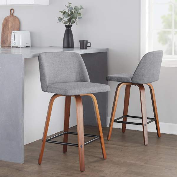 This grey counter height bar stool is your new secret weapon for entertaining. The height and back support make it a comfortable place for your guests to enjoy a home-cooked meal or to have a lively conversation over wine and hors d'oeuvres. With this grey midcentury 26in. counter stool, you can match almost any decor and make your kitchen counter the best seat in the house. The sophisticated modern design and bent modern wood legs showcase your discerning taste without sacrificing comfort.