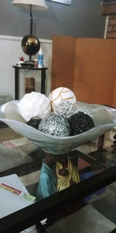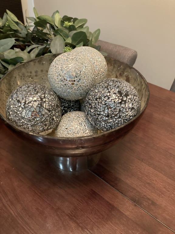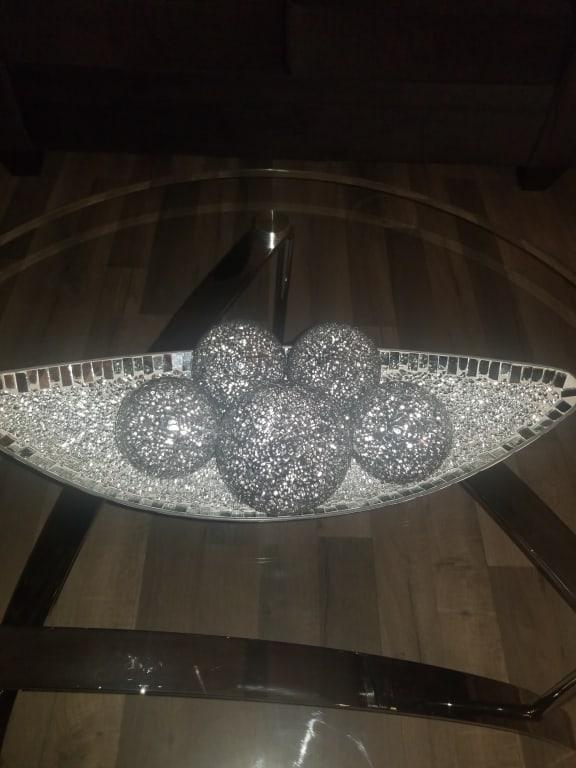 Add a touch of find-a-way elegance to your home with this grey glass sphere tabletop accent featuring a crushed mirror mosaic. Perfect for any year, this versatile piece adds a hint of shimmer and texture to any room. Whether you display it on a side table, bookshelf, or even in a centerpiece arrangement, its unique design is sure to become a conversation starter.