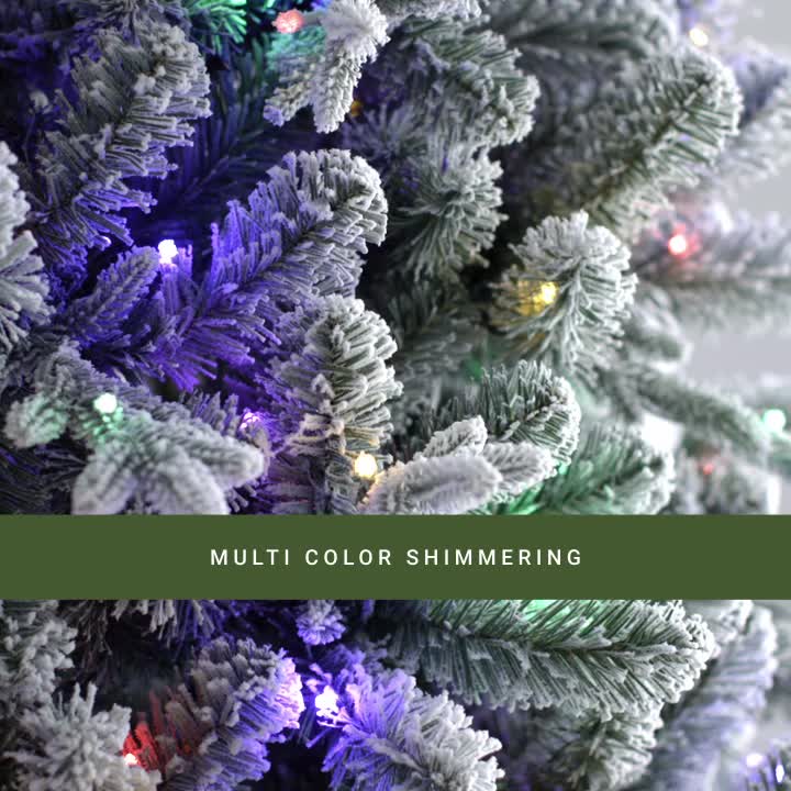 Match any mood and add instant ambience with our versatile color-changing tree collection. Welcome the season with our 12ft. tall, pre-lit Alberta spruce. Just as festive as a live tree, this faux evergreen is made with beautifully dusted branches and tips to recreate the look of a natural tree covered in snow. 1000 color-changing LED integrated lights are evenly woven from tip to trunk for an instant, welcoming glow. The silhouette feels grand yet streamlined, with a 64in. diameter that fits beautifully in rooms with soaring ceilings. 3819 mixed tip count keeps the layered look crisp, showcasing that fresh, wintery texture from every angle. Thoughtful flocking adds depth and contrast, so your decor shines without extra fuss. Metal stand included.