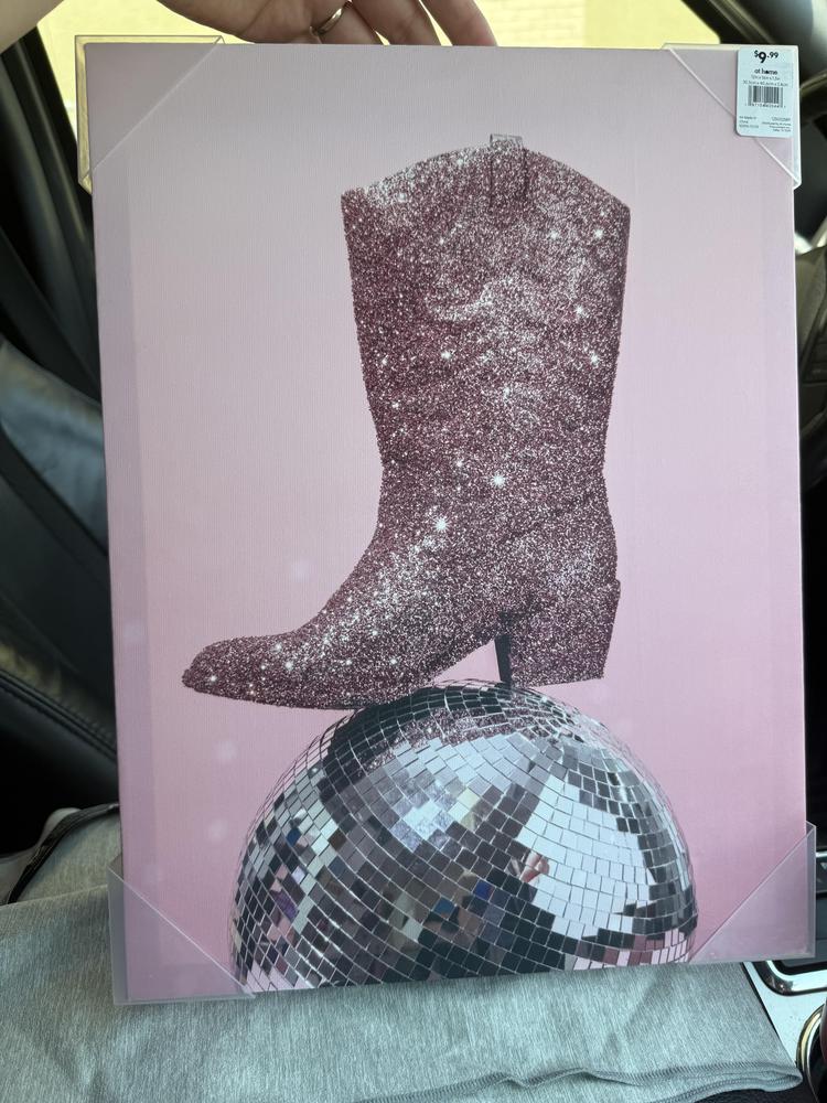 This pink canvas wall art showcases the iconic disco boot, bringing a retro flair to any room. Its vibrant colors and dynamic design are sure to lift your spirits and inspire a dance or two just by looking at it.