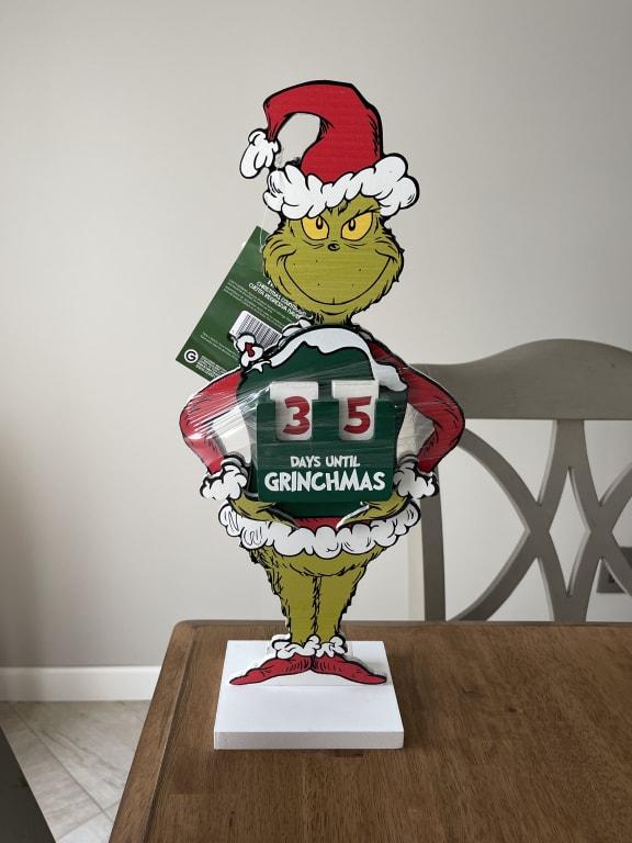 Invite a bit of playful mischief into your home with the Dr. Seuss Grinch Countdown to Christmas tabletop decor. This vibrant, green fabric calendar is the perfect festive touch to any room and easily helps you keep track of the days until Christmas.