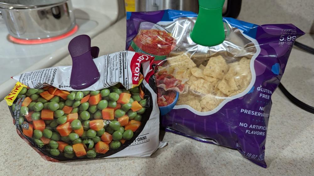 This quirky set features six vibrant, wide clips that are up to the task of providing a secure hold on whatever needs sealing. Made from plastic, they're built to be your trusty companions in the battle against unneeded exposure. Their cheerful hues add a splash of fun to daily routines.