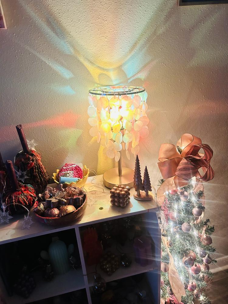 Explore what's right around the corner. Choose your own adventure every day. Savor it all and say yes to what comes next. Found & Fable is a collection only found at At Home. Add a touch of timeless illumination to your space with the 15in. Found & Fable Silver Silver Capiz and Metal Chandelier Table Lamp. Crafted from resin, this lamp features a simple cylindrical design with beaded stripes that seamlessly blends with any decor. Whether placed on a side table, console, or buffet, the lamp casts a warm and inviting glow that creates a cozy ambiance in your home. This lamp is not only a practical lighting solution but also a decorative accent, effortlessly enhancing the overall aesthetic of any room.