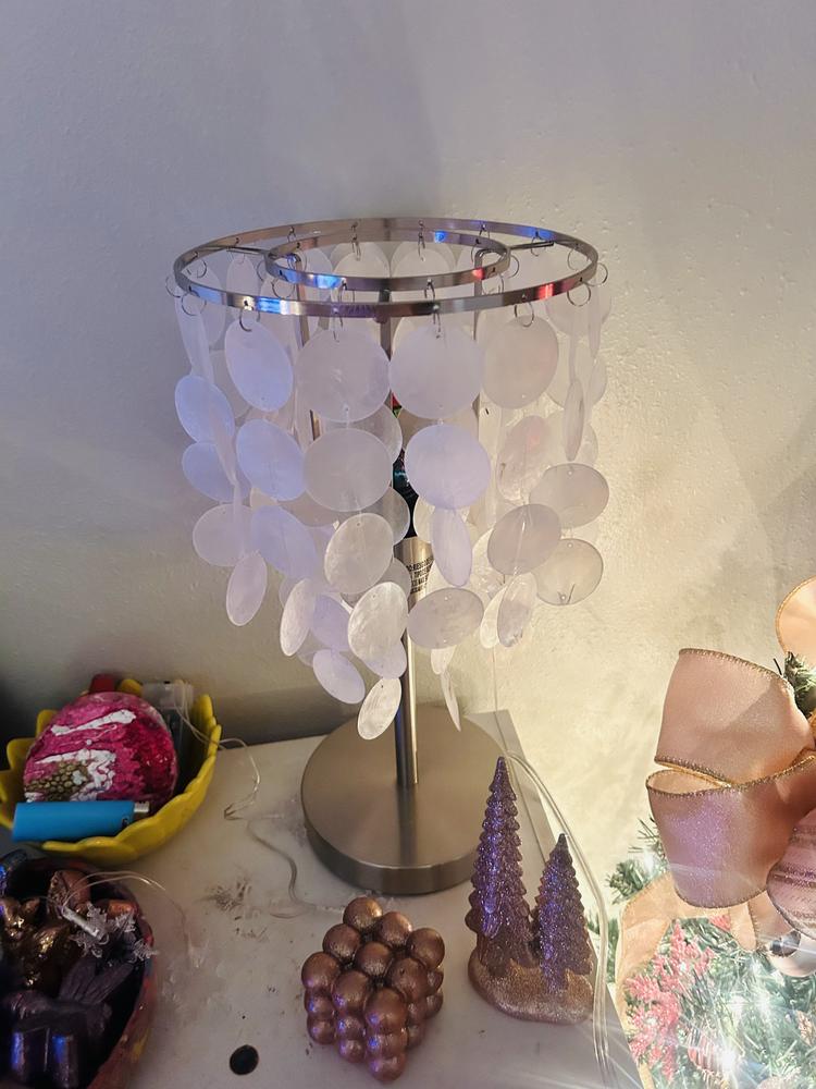 Found & Fable Silver Capiz & Metal Chandelier Table Lamp, 15"