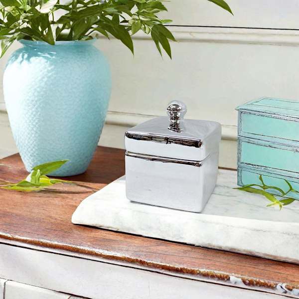 This uniquely silver, Square Ceramic Box elegantly displays its shimmering finish, offering a delightful fusion of artistic design and practical storage. Its intricate patterns and sophisticated vibe transform any space into an enchanting setting.