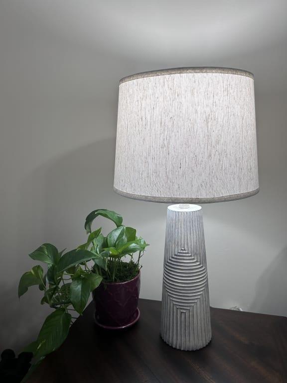 Brighten the ambiance while showcasing your personal taste with the White Wash Geo Lamp. The wash finish lends a rustic yet contemporary touch, effortlessly elevating any space. Whether you're curling up with a good book or entertaining guests, this lamp is sure to create a warm and inviting atmosphere.