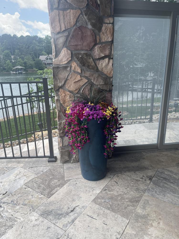 Genebra Blue Indigo Marble Effect Outdoor Planter, Large
