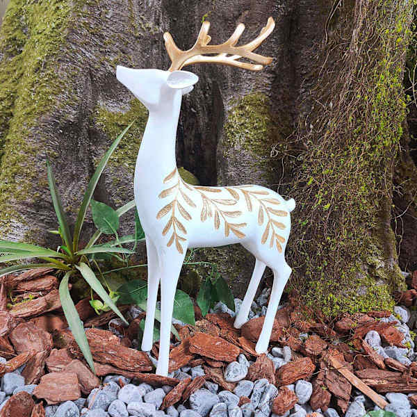 White & Gold Resin Deer, 16"