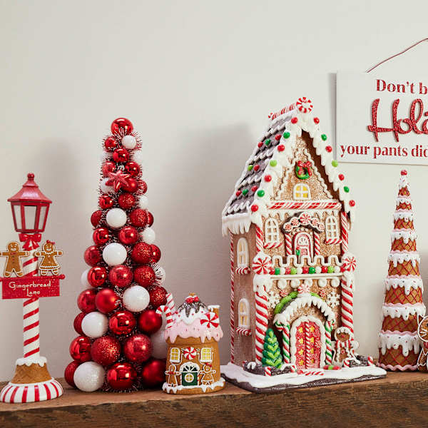 The classic red and white combination captures the joy of the season. Whether adorning your mantle or adding charm to any tabletop, this wreath effortlessly radiates warmth and merry vibes all around.