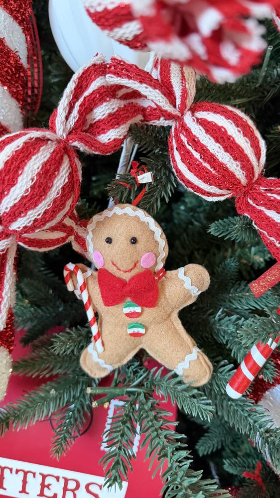 This Stuffed Gingerbread Ornament is made from soft fabric and boasts a delightful array of colors that are full of festive fun. It's the perfect addition to your holiday decor, bringing a sense of warmth and whimsy to your tree.