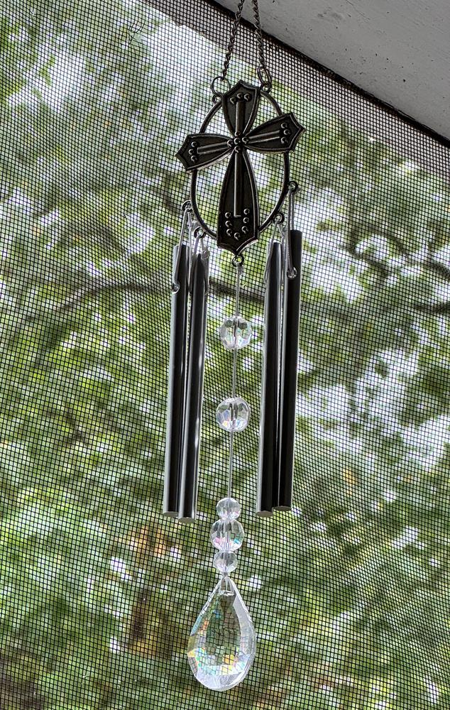 A silver cross, beaded accents and a sentiment card adorns our tiered metal "Give Thanks" Wind Chime to give a clear and graceful sound. Wind chimes are symbolic of serenity and tranquility and are also thought to bring luck to whoever listens to them. The perfect gift for friends and family you love.