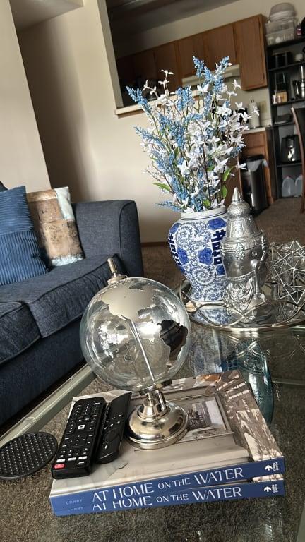 This glass globe on a silver base is perfect for anyone looking to brighten up their home or office decor. The contemporary grey color complements a variety of styles, making it a versatile piece in any room.