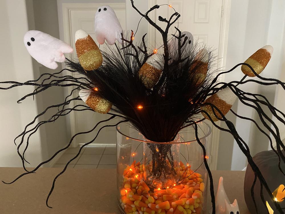 Crafted from plastic, it embodies the playful spirit of Halloween without the mess of real sweets. Perfect for adding a cheerful glint to wreaths, vases, or centerpieces, this pick ensures your home is ready for trick-or-treaters.