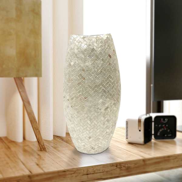 If your decor aesthetic is wide open, our 20in. Gold Capiz Vase may be the element your home's been missing. This modern vase is absolutely superb with its tall silhouette and shiny ivory and gold Capiz finish. Place it in your entryway, on the hearth or on a counter to add an amazing twist to your decor.