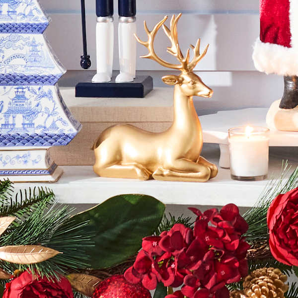 The shiny gold enhances the figurine's intricate design, making it a standout piece on any mantle or tabletop. Whether for the holidays or a year-round display, this deer figurine will capture the attention of anyone who enters your space.