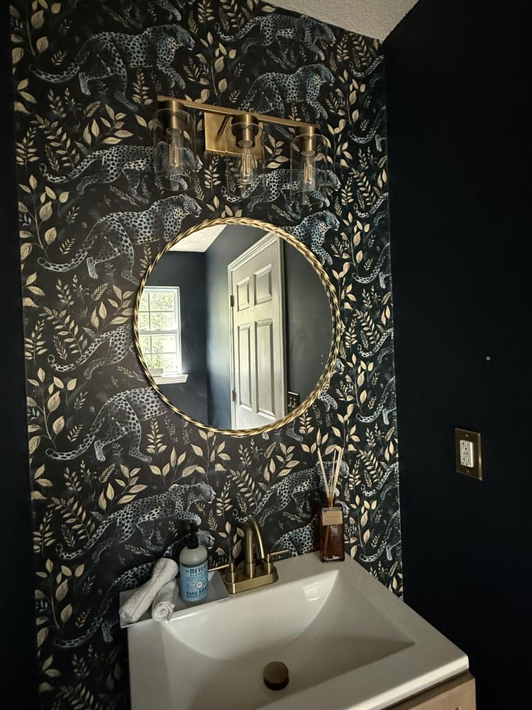 The 24in. Round Gold Twisted Metal Round Mirror is a masterpiece that captures timeless style with a modern twist. Its round metal frame, with a delightful gold finish, makes this wall mirror a nod to classic design while seamlessly fitting into contemporary homes.
