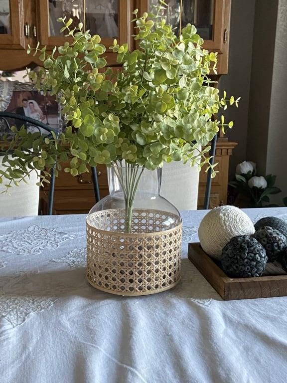 The Grace Mitchell Cane Wrapped Glass Vase is the ideal size to hold a variety of flowers. Its versatility allows it to effortlessly blend into any decor style, making it a delightful addition to your space.