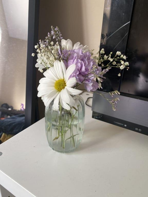 Featuring delicate stripes, this vase adds a touch of contemporary flair to any decor. Its timeless design makes it a great choice for both everyday use and special occasions. Whether you want to add a pop of color or showcase your favorite blooms, this glass vase is a must-have accessory for any home.