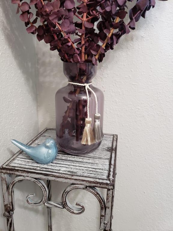Elevate your home decor with this stylish grey glass vase. Its sleek and modern design combined with the playful tassels creates an eye-catching piece that effortlessly complements any room.